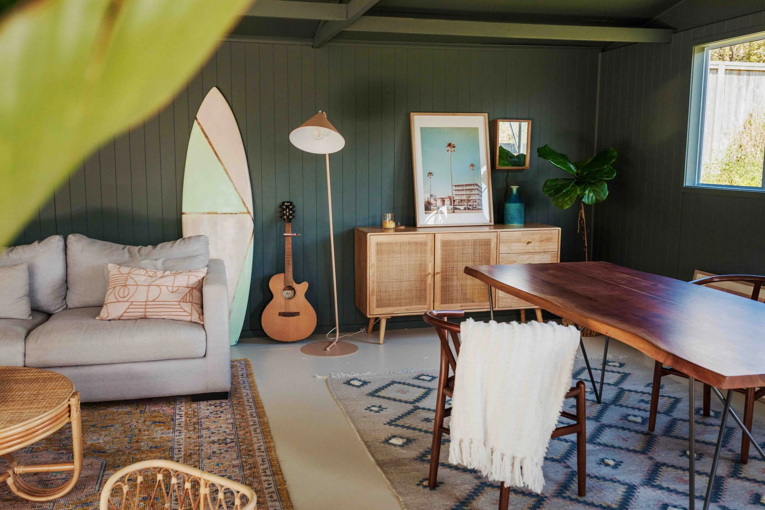 What began as a humble garage and poorly utilised space has now evolved into a calming and gorgeous space for creativity, relaxation, work and self-care. Part creative studio, part home gym, and part chill zone.